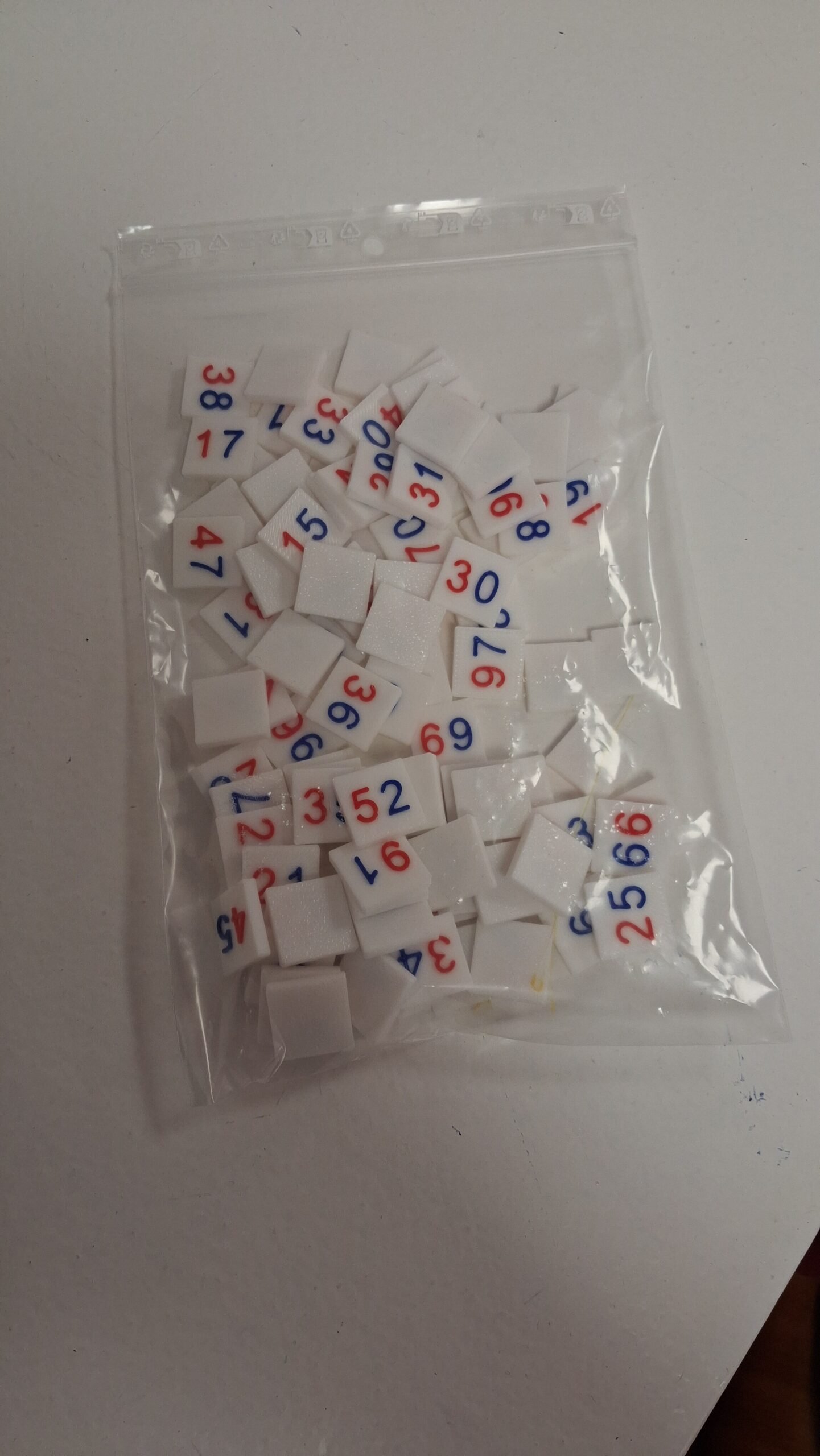 - Les Jetons : Un sachet complet de nombres de 0 à 99, écrits avec un code couleur clair (bleu/rouge) pour distinguer immédiatement les unités et les dizaines.